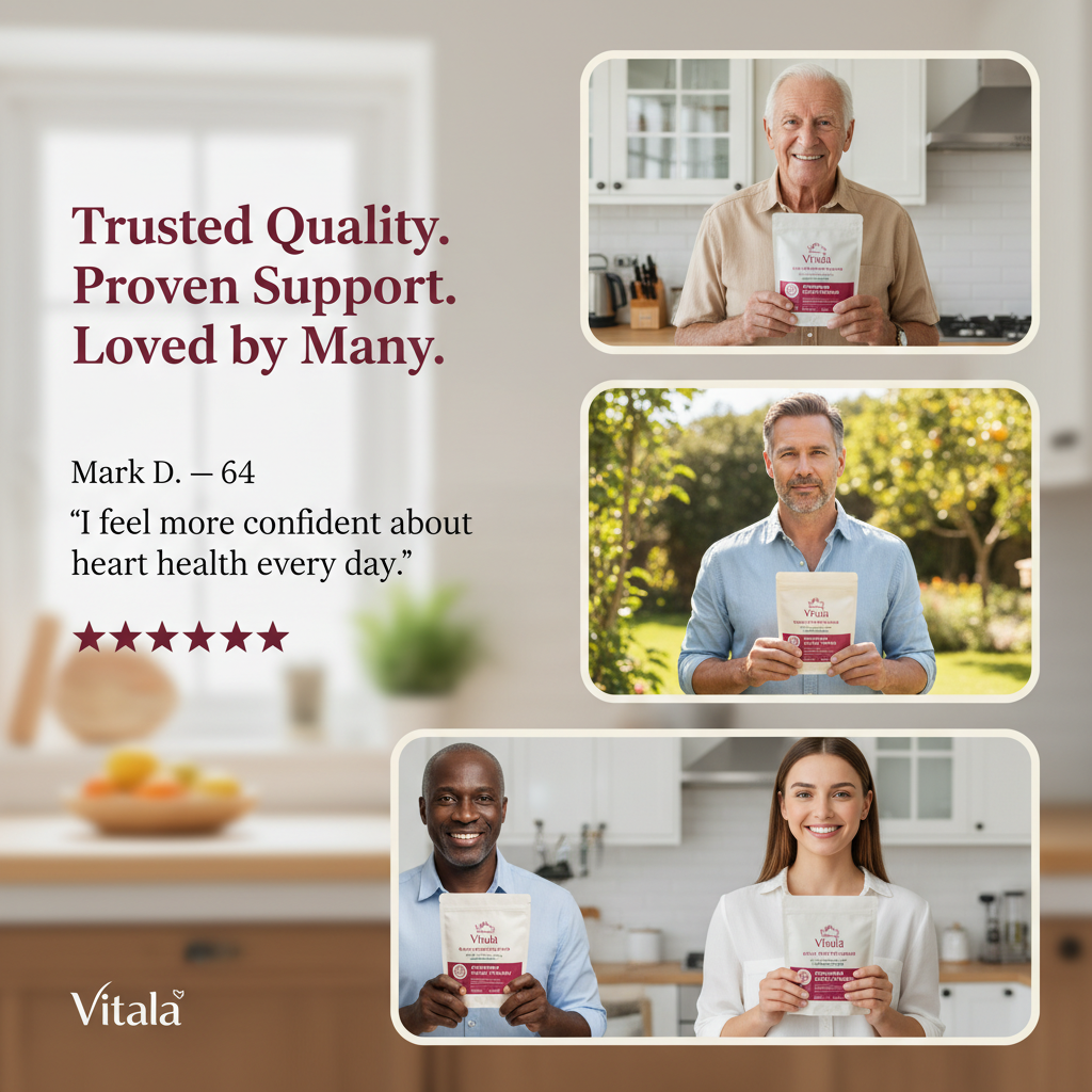 “I can genuinely feel the circulation support. My hands and feet aren’t cold all day anymore, and I have steady energy instead of crashing. Vitala has become part of my daily routine.”